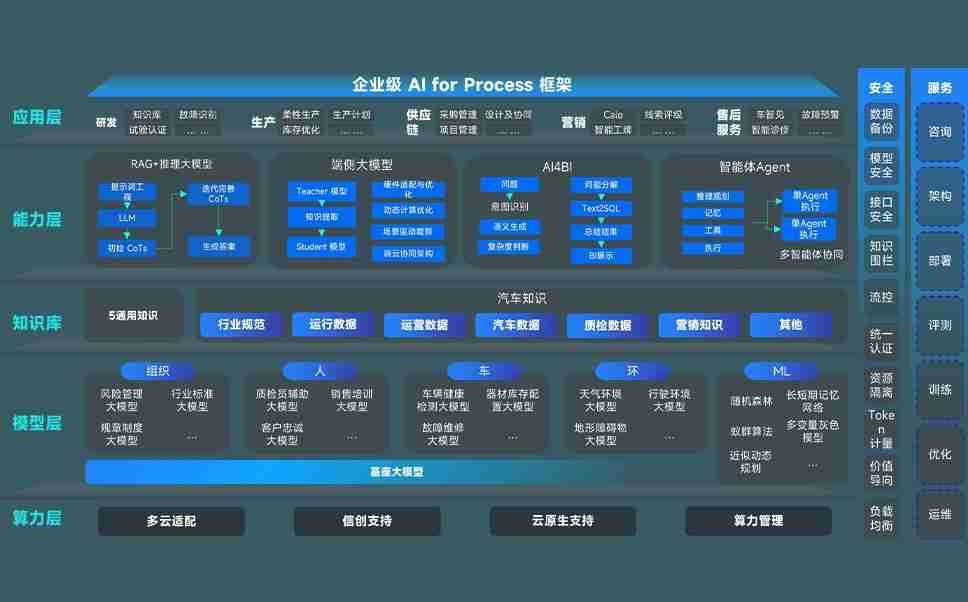 端到端的一站式AI工作空间深度融合了从企业战略规划到日常经营的全流程业务板块,,定向解决车企内部领域多、、、、部门多、、、链条长、、场景碎片化等难题,,,,支持车企快速构建以AI为核心的生产力写作体系,,,,实现任务执行与AI能力的无缝集成与交互